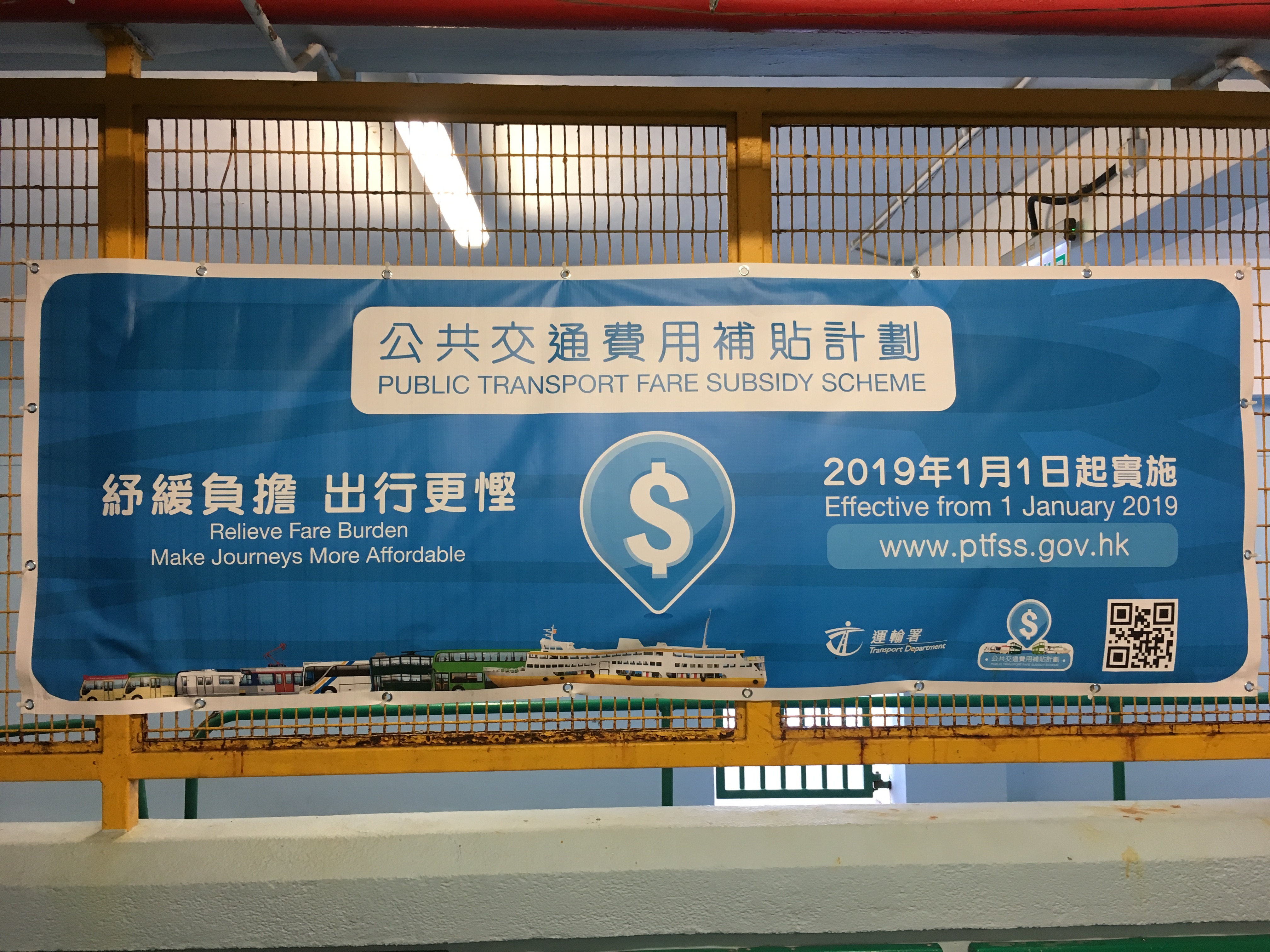 公共交通費用補貼計劃 (Public Transport Fare Subsidy Scheme),為日常使用本地公共交通服務出行而公共交通開支較高的市民減輕交通費用負擔。計劃免入息審查,涵蓋的公共交通服務包括渡輪。